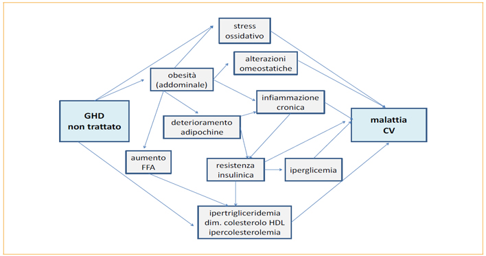 Nel bambino i dati non sono altrettanto evidenti: alcuni studi non riportano anomalie del profilo lipidico o alterazioni solo marginali, mentre altri mostrano livelli di CT e C-LDL più elevati in bambini con GHD non trattati; nella maggior parte dei casi il trattamento con GH migliora il profilo lipidico con riduzione di CT, LDL-C e trigliceridi; le differenze riscontrate dai diversi studi nel GHD pediatrico possono essere dovute anche alle diverse eziologie di GHD e al deficit combinato di altri ormoni ipofisari.