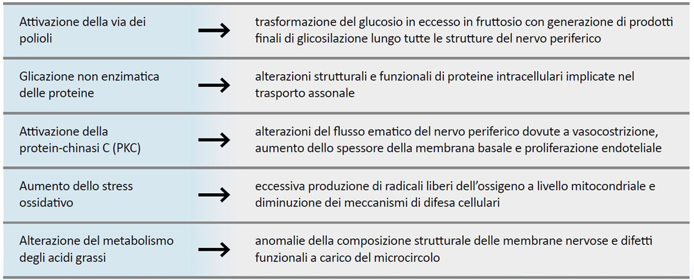 Tabella 2. Principali anomalie del metabolismo coinvolte nella patogenesi della neuropatia diabetica6,7