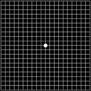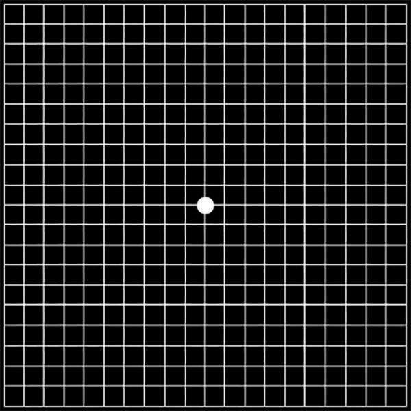 il reticolo di Amsler valuta i 20° del campo visivo centrale ed è utilizzato soprattutto nello screening e nel monitoraggio delle maculopatie. Il più comune è il reticolo con linee verticali e orizzontali bianche su sfondo nero, dove ogni singolo quadrato della griglia sottende un angolo di 1°. Il paziente indossando gli occhiali da lettura guarderà il punto centrale e dovrà osservare se le linee appaiono ondulate o distorte.