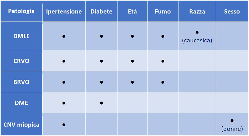 - diabete mellito: può essere presente nel 15% dei soggetti con BRVO di età >50 anni