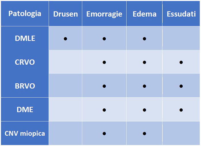 - edema maculare (che è la causa di scarsa acuità visiva)