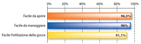 Questo sistema si è dimostrato efficace nei confronti di concentrazioni batteriche anche elevate. Un'indagine che ha valutato la facilità di impiego e l'accettabilità globale del sistema ABAK® rispetto ad altri metodi di somministrazione (multidose con conservanti o monodose) ha evidenziato una buona maneggevolezza e un grado elevato di accettabilità di questo dispositivo (Fig. 3).