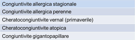Tabella 4. Principali forme di congiuntivite allergica