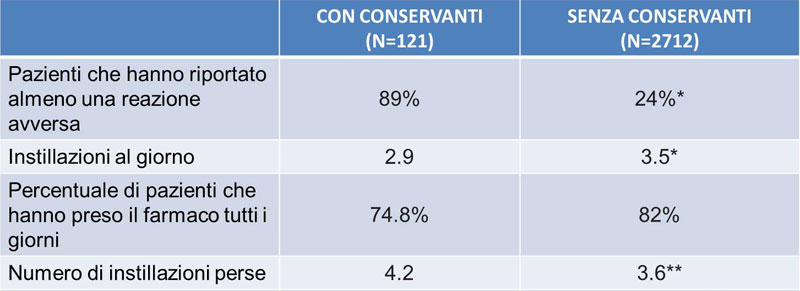Non va sottovalutato, inoltre, che le reazioni avverse correlate alla presenza di conservanti possono compromettere l'efficacia del trattamento oculare in termini di aderenza al trattamento.
