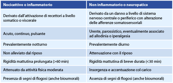 Tabella 1. Elementi distintivi del dolore nocicettivo e neuropatico.