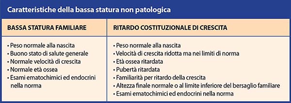 Il primo passo è senza dubbio quello di raccogliere un'attenta ed accurata anamnesi familiare, ricercando eventuali condizioni patologiche ereditarie che possano giustificare la bassa statura nel bambino. Infatti, la maggioranza dei bambini con bassa statura appartengono a delle varianti "normali" o "parafisiologiche" dell'accrescimento, come la bassa statura familiare e il ritardo costituzionale di crescita (Tab. 1).