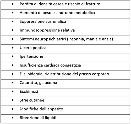 Tabella 2. Complicanze correlate all'uso a lungo termine di corticosteroidi orali