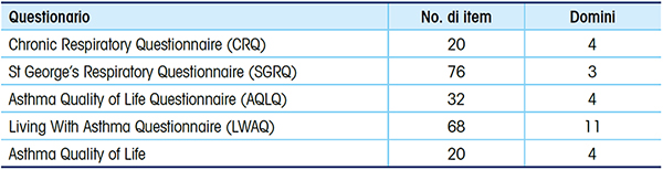 Tabella 3. Esempi di questionari sulla qualità della vita correlati alla malattia asmatica