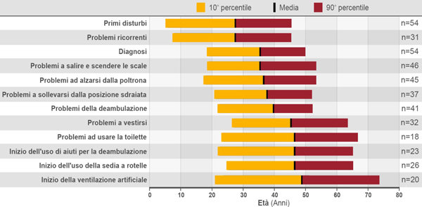 Figura 2. Distribuzione dell'età in relazione ad eventi specifici durante la malattia di Pompe4mod