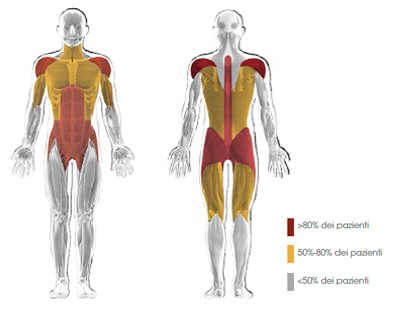 Figura 3. Distribuzione della debolezza muscolare prossimale tipica dei pazienti con malattia di Pompe a esordio tardivo12mod