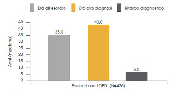 Figura 5. Ritardo diagnostico nella popolazione di pazienti con età di esordio dei sintomi >12 anni15