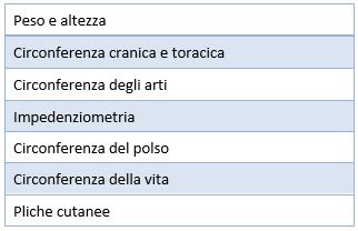 Tabella 1. Parametri antropometrici per la valutazione dello stato nutrizionale del bambino