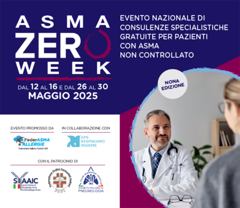 Per dare al paziente asmatico la possibilità di accedere alle nuove opzioni terapeutiche, quando indicate, è fondamentale che effettui regolarmente una valutazione di controllo dello stato della malattia e che riceva informazioni utili per una sua migliore gestione. Ed è con questa mission che si è svolta anche nel 2025 la nona edizione di ASMA ZERO WEEK, un evento che offre ai pazienti con diagnosi di asma la possibilità di ricevere consulenze specialistiche gratuite presso Centri di pneumologia e allergologia distribuiti sul territorio italiano.
